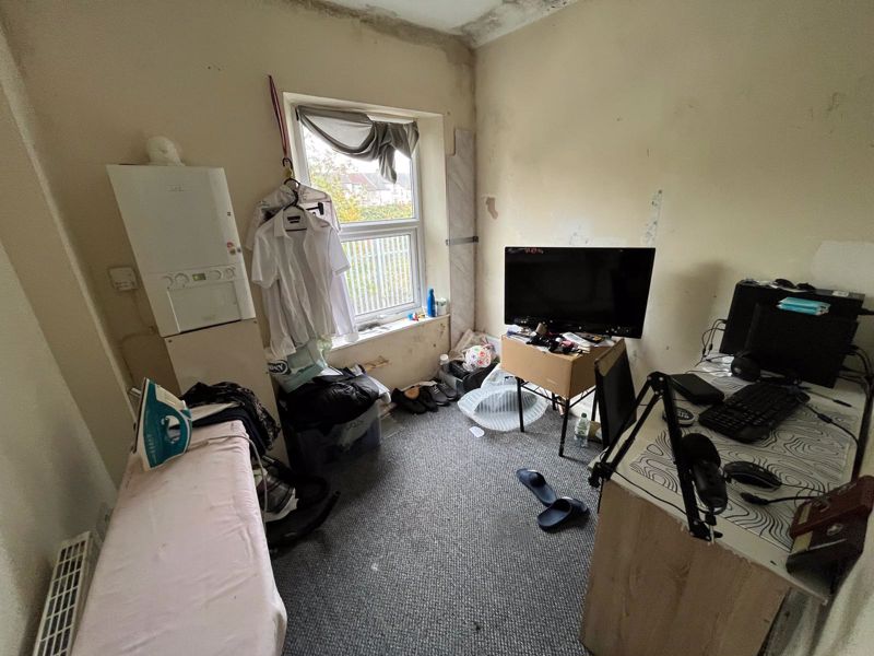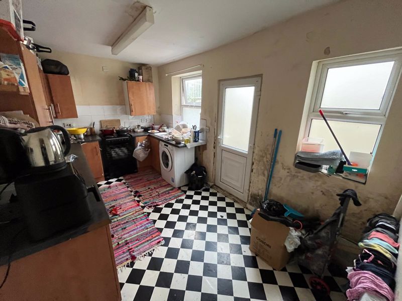 This bay fronted property is spacious and holds two reception rooms to the ground floor. They are complete with laminate flooring and radiators in both areas. The kitchen has fitted wall and base units and been finished with part tiled walls and double glazed windows. There is also space for a dining table. The kitchen also offers access to the rear yard.