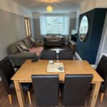 As you step inside, you are welcomed into a bright and inviting lounge featuring laminate flooring and French doors, that open out to the rear garden. The lounge also comfortably accommodates a dining table and chairs, creating a practical, open plan living and dining area. The kitchen offers fitted wall and base units, tiled walls and generous workspace, complemented by a ceramic tiled floor, perfect for everyday cooking and family life.