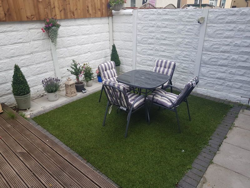 To the rear, the garden features a decked patio area, perfect for relaxing outdoors, along with a timber shed for additional storage.