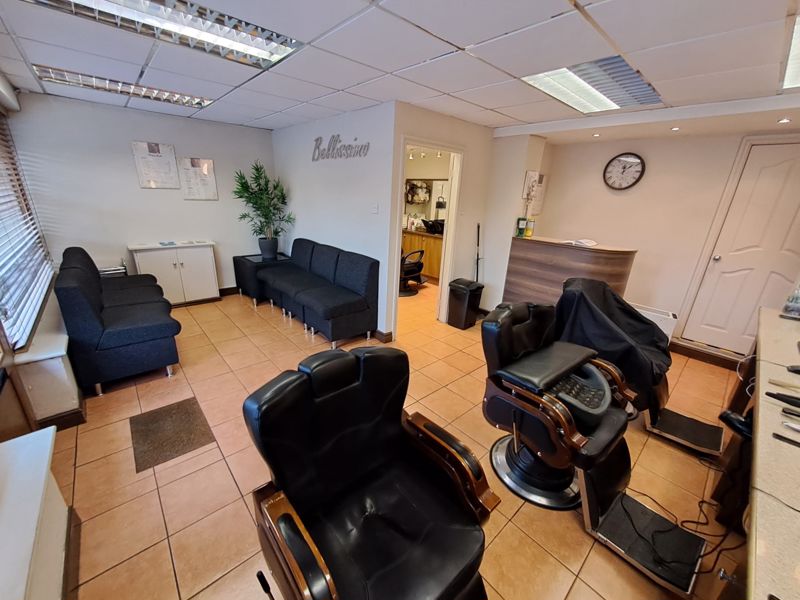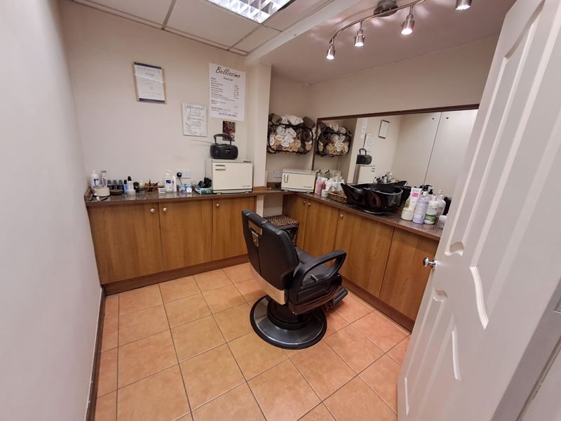 The shop front comprises of glazed shop frontage with electric roller shutter, retail area to front which has ceramic tiled flooring and currently has a seating area for waiting clients, whilst the main salon area offers multiple chairs for styling clients. There is also a stylish reception desk. There is a further treatment room located to the rear, which has fitted base units and offers ample space.